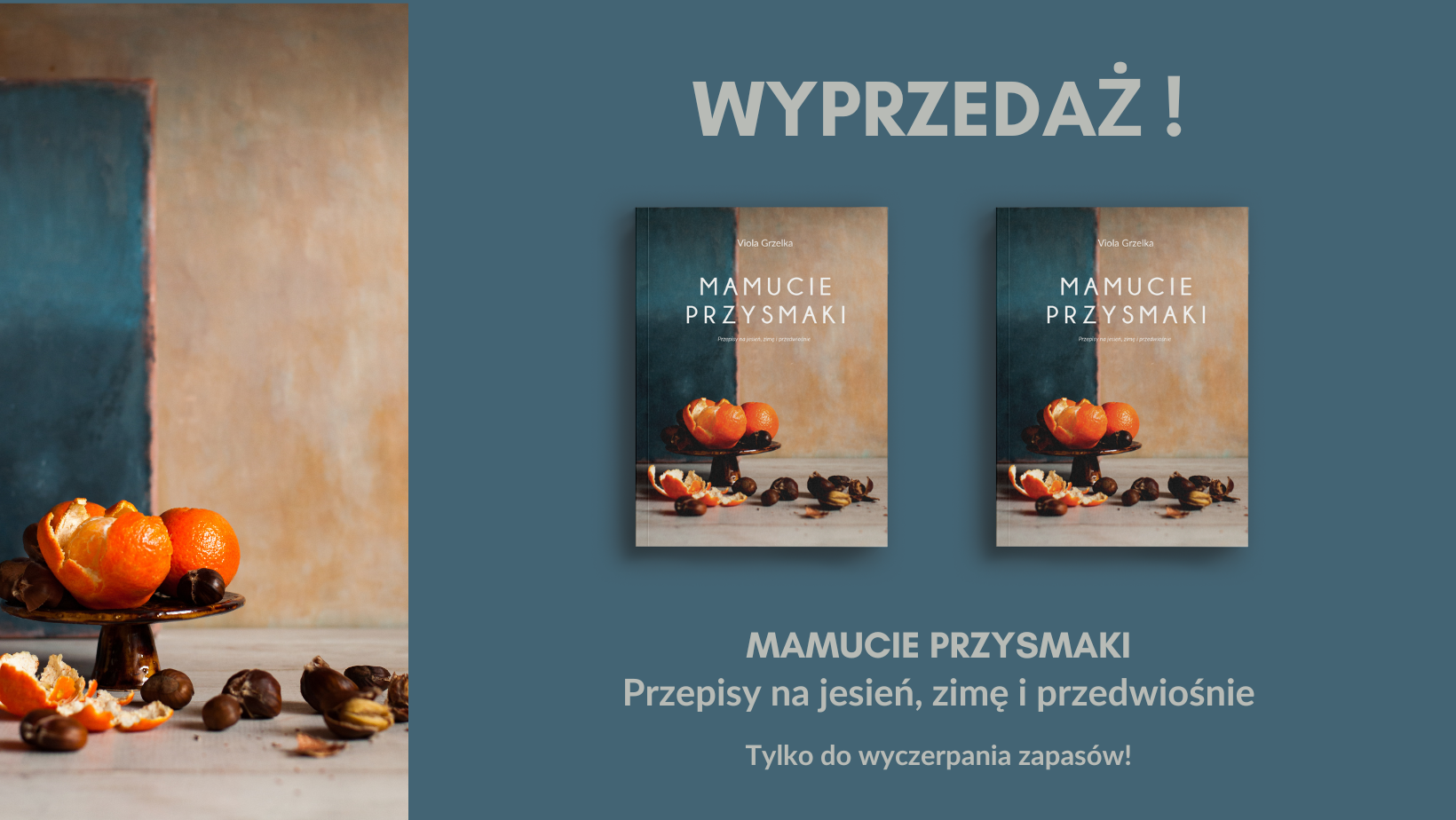 Jesienią 2019 roku wydałam swoją pierwszą książkę „Mamucie Przysmaki. Przepisy na jesień, zimę i przedwiośnie”. Wiosną 2022 roku ukazała się moja druga książka MAMUCIE PRZYSMAKI. PRZEPISY NA WIOSNĘ i LATO [kliknij]. Możesz pobrać jej fragment w zakładce FREE [kliknij].