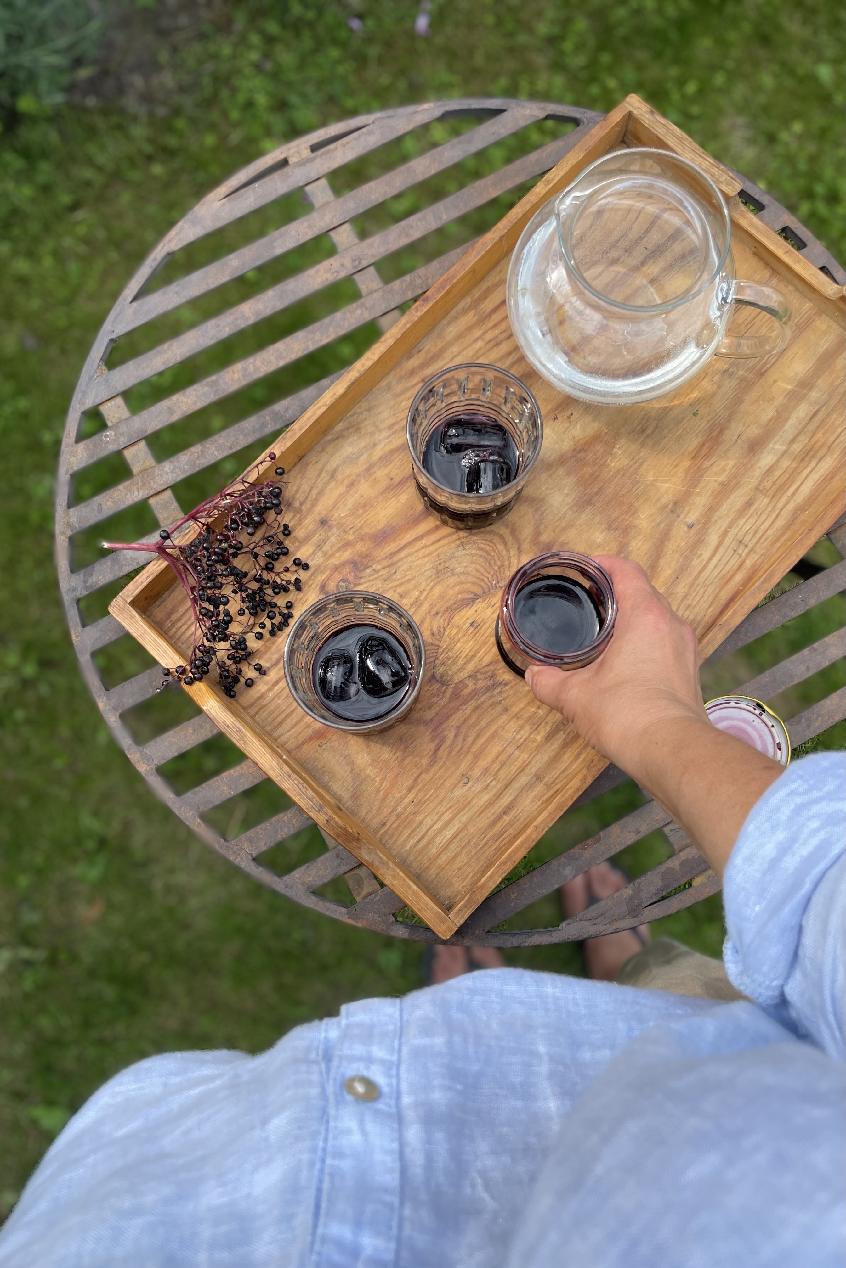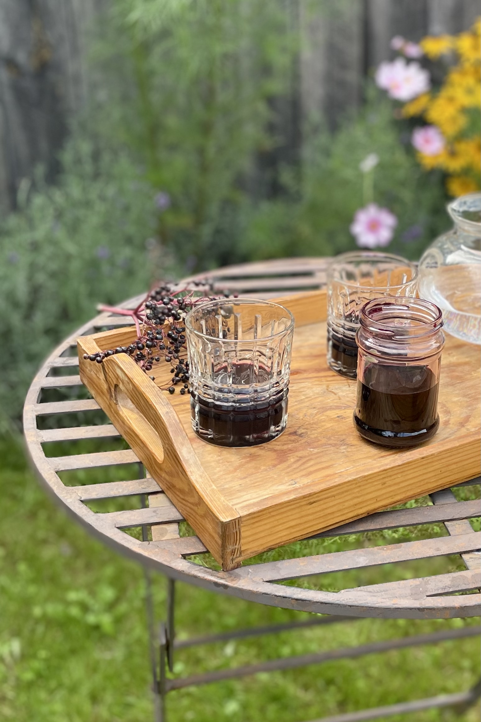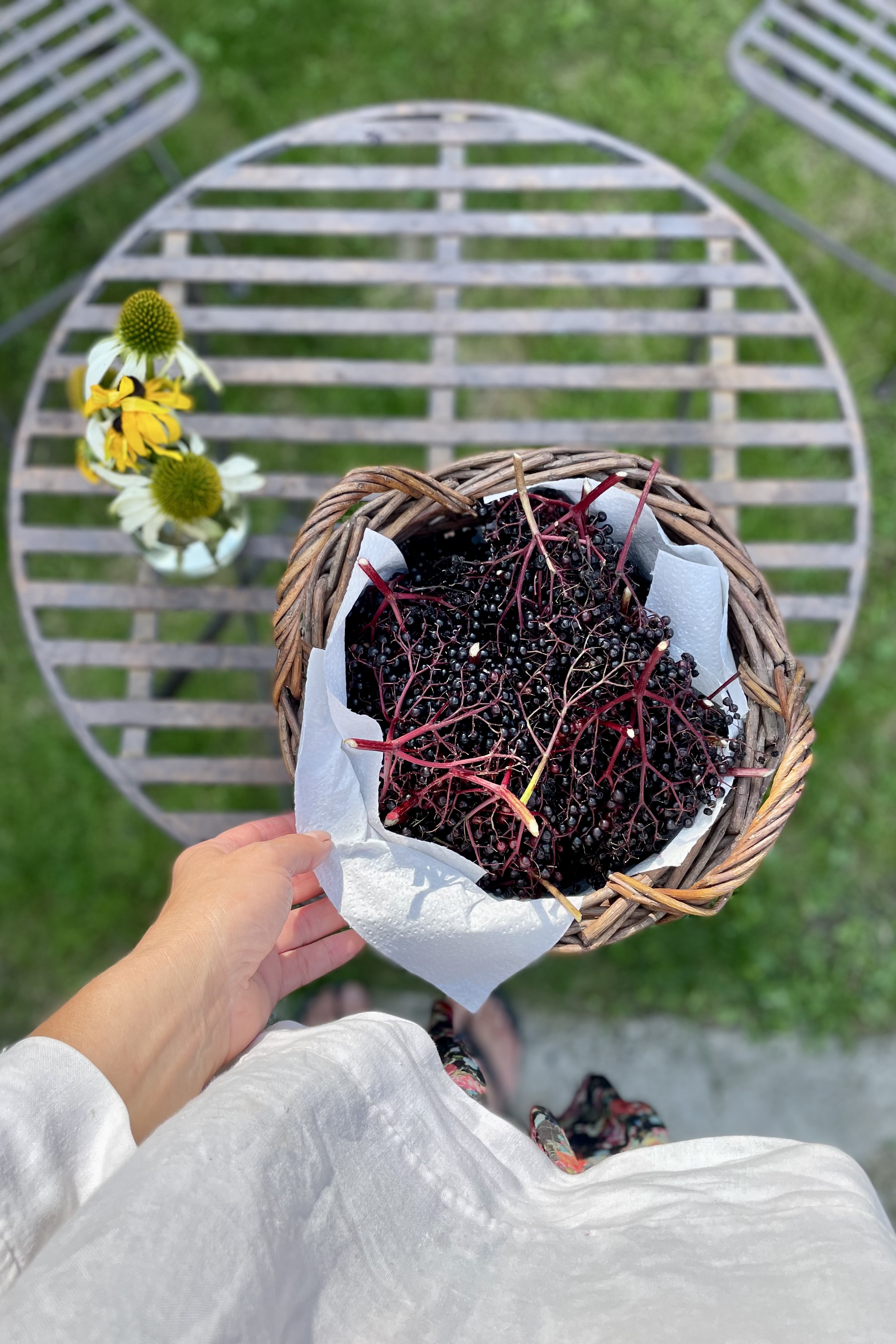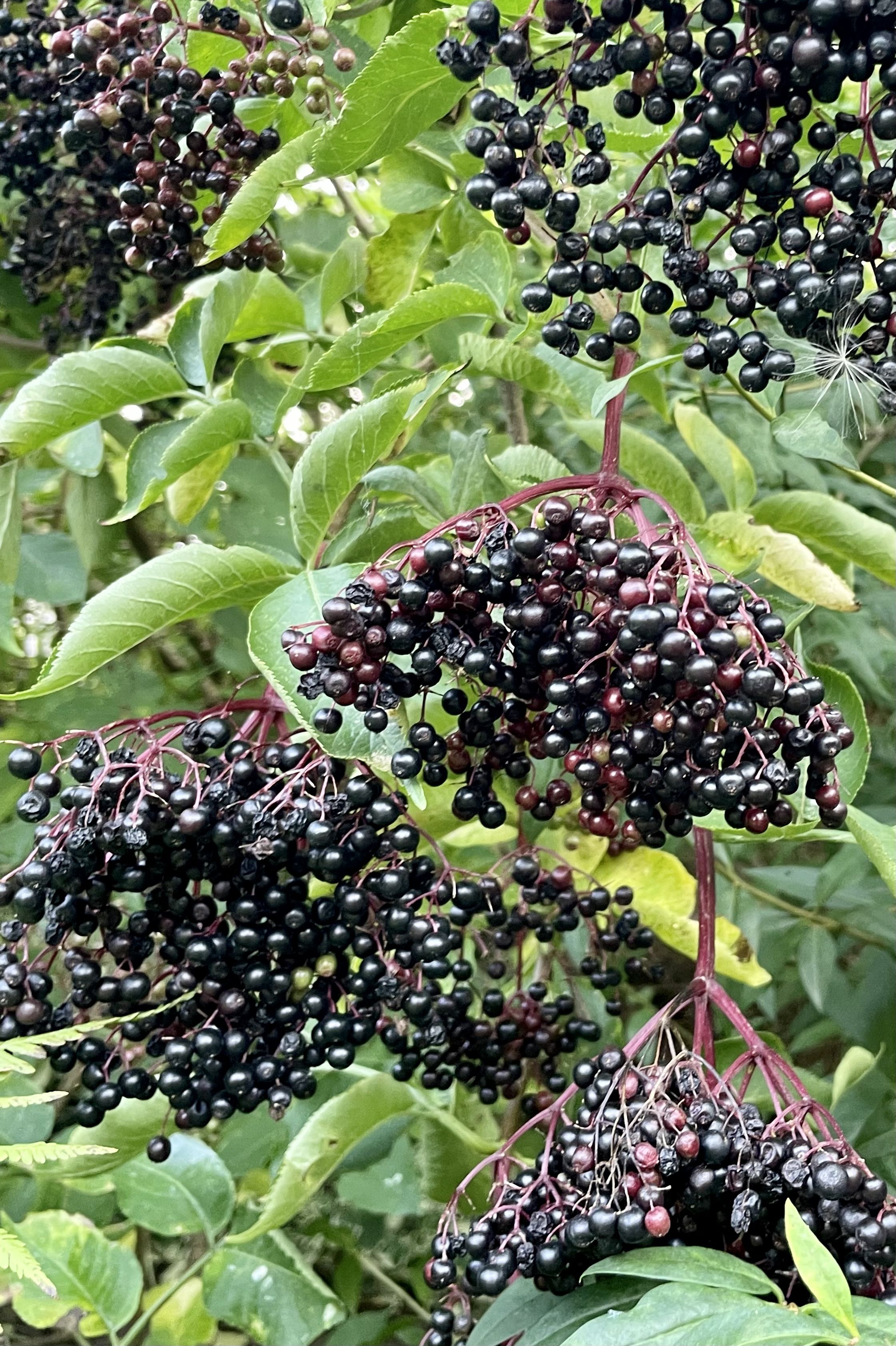 Syrop z czarnego bzu towarzyszy nam również, kiedy kogoś z bliskich dopadnie przeziębienie, ponieważ oprócz walorów smakowych ma wiele dobroczynnych działań prozdrowotnych, co potwierdzają doniesienia naukowe. Dzięki obecności antocyjanów owoce czarnego bzu mają działanie przeciwutleniające, przeciwzapalne i przeciwwirusowe. Wspierają układ odpornościowy, regulują ciśnienie krwi. Podobnie jak inne owoce jagodowe, owoce czarnego bzu mają również korzystny wpływ na oczy. Mogą być wsparciem nie tylko w profilaktyce, ale również w chorobach oczu [Agata Lewandowska “Czarny bez, uzdrawiająca moc”, Wydawnictwo RM, Warszawa 2024]. Mam to wszystko na uwadze, ale dla mnie zarówno kwiat, jak i owoc czarnego bzu są również składnikami urozmaiconej diety, a skoro w moim otoczeniu Sambucus nigra rośnie w takiej obfitości, to dlaczego z niego nie skorzystać… Oczywiście jak ze wszystkim należy zachować umiar.