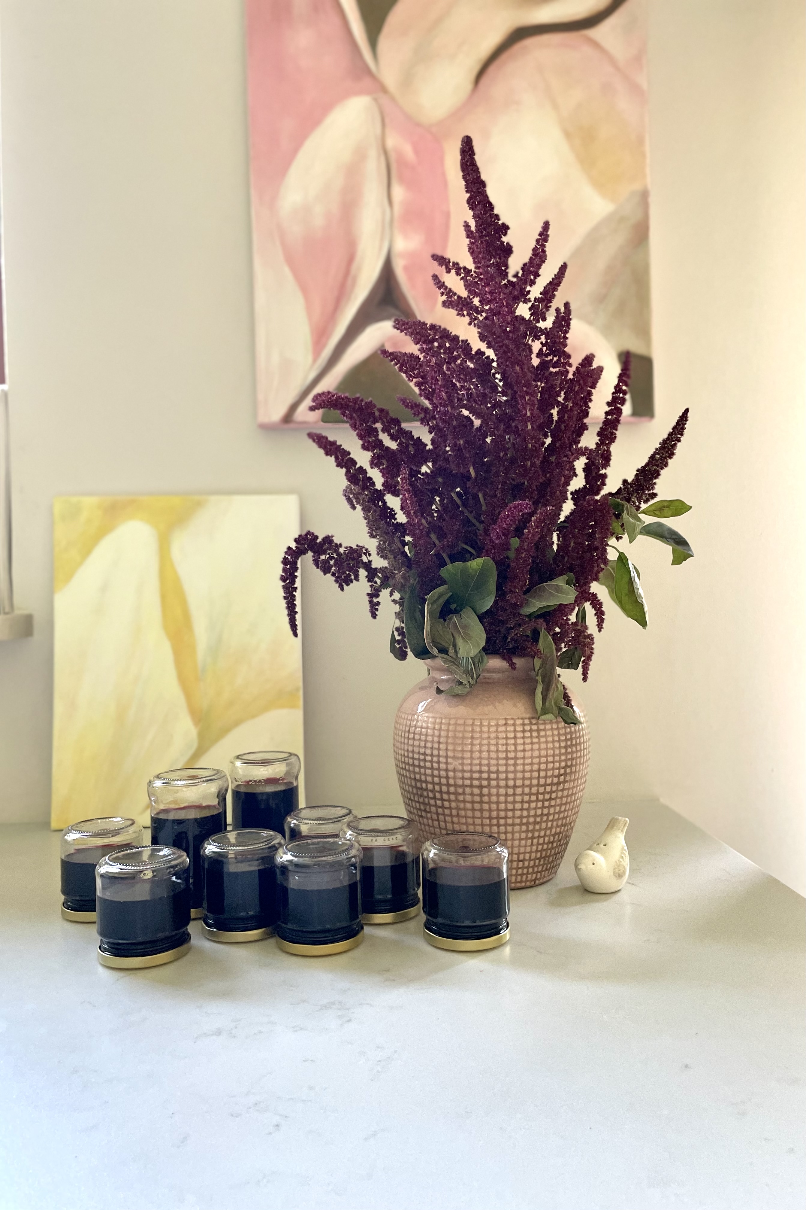 Owoce czarnego bzu zawierają sambunigrynę, związek cyjanogenny, w związku z tym absolutnie nie należy jeść surowych owoców. Zbieramy baldachy z dojrzałymi, ciemnymi owocami, pozbawionymi pleśni, Zielone i czerwone owoce odrzucamy! Obróbka termiczna neutralizuje toksyczne substancje, stąd gotujemy owoce. Ilość owoców w podanym niżej przepisie jest orientacyjna, istotne tutaj są proporcje składników. Podaję proporcje, które według mnie są najlepsze i łatwe do zapamiętania, ale można je zmieniać według swojego uznania. Jeśli dodajesz mniej cukru, słoiczki lepiej zapasteryzować.